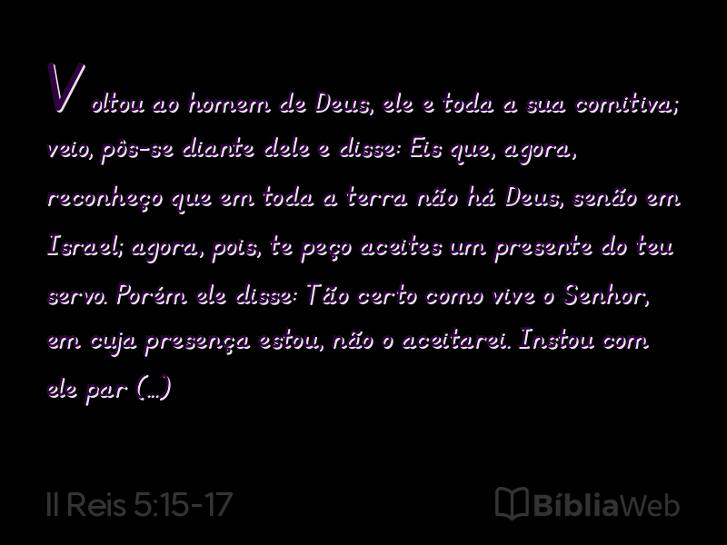 Versículos 15 a 17 de II Reis 5 da Bíblia. Almeida Revisada e Atualizada (1993)