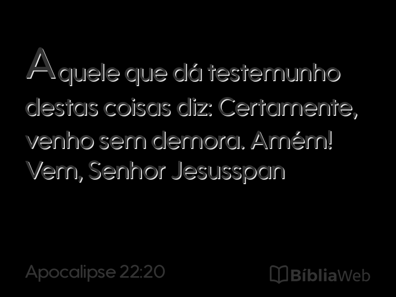 Versículo 20 de Apocalipse 22 da Bíblia. Almeida Revisada e Atualizada (1993)