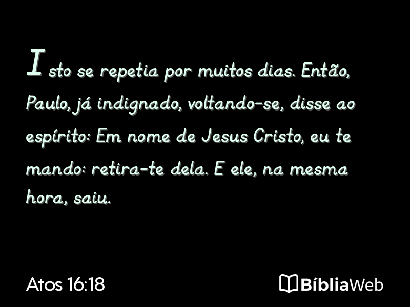 Versículo 18 de Atos 16 da Bíblia. Almeida Revisada e Atualizada (1993)