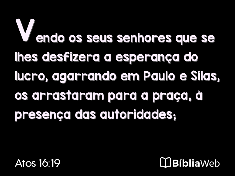 Versículo 19 de Atos 16 da Bíblia. Almeida Revisada e Atualizada (1993)