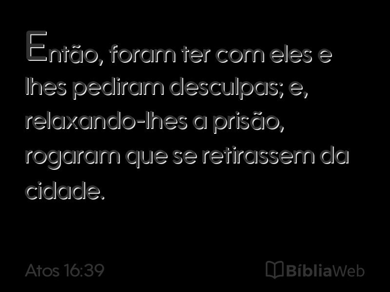Versículo 39 de Atos 16 da Bíblia. Almeida Revisada e Atualizada (1993)