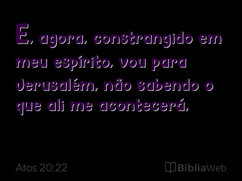 Versículo 22 de Atos 20 da Bíblia. Almeida Revisada e Atualizada (1993)
