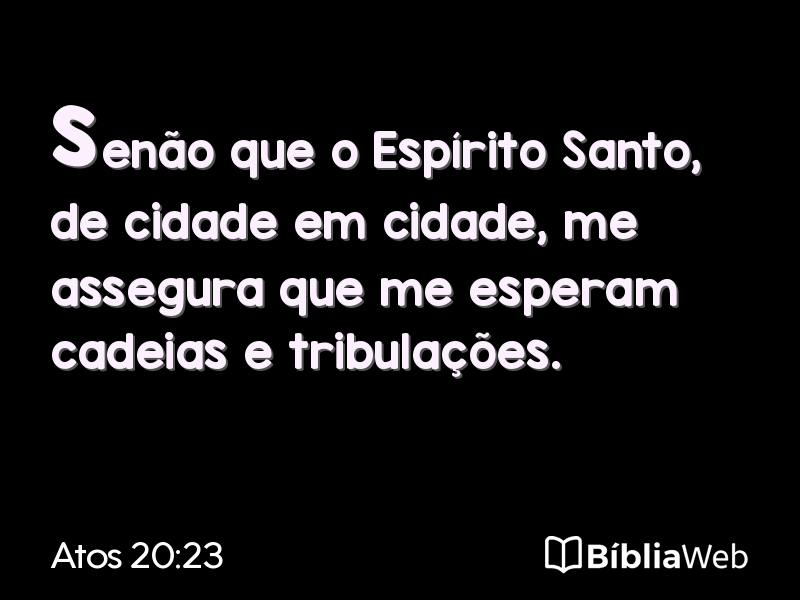 Versículo 23 de Atos 20 da Bíblia. Almeida Revisada e Atualizada (1993)