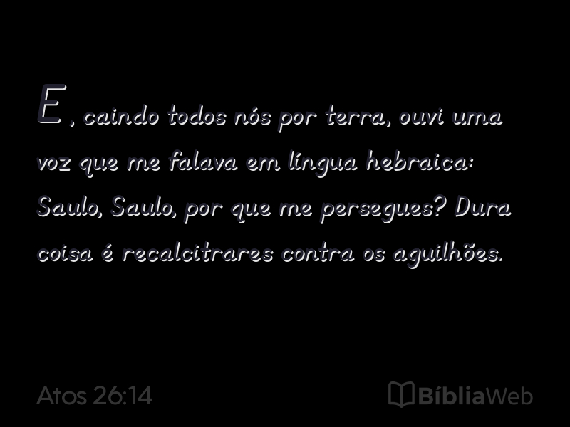 14E, caindo todos nós por terra, ouvi uma voz que me falava em língua hebraica: Saulo, Saulo, por que me persegues? Dura coisa é recalcitrares contra os aguilhões.