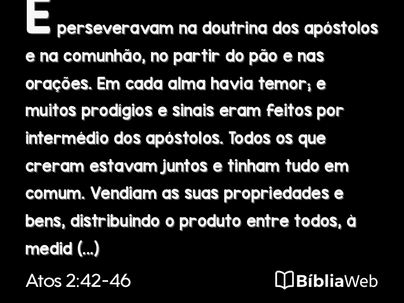 Versículos 42 a 46 de Atos 2 da Bíblia. Almeida Revisada e Atualizada (1993)