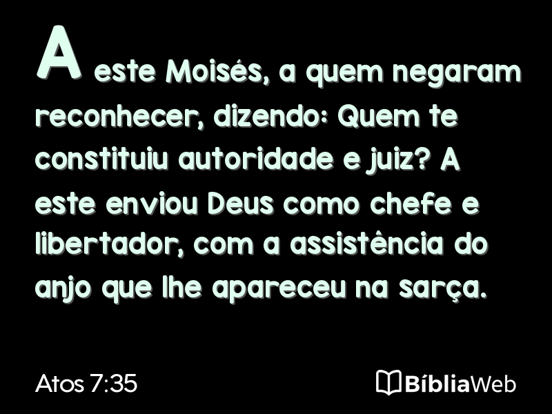 35A este Moisés, a quem negaram reconhecer, dizendo: Quem te constituiu autoridade e juiz? A este enviou Deus como chefe e libertador, com a assistência do anjo que lhe apareceu na sarça.