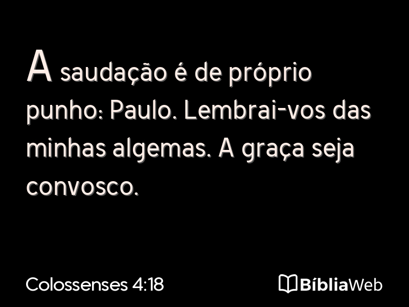 Versículo 18 de Colossenses 4 da Bíblia. Almeida Revisada e Atualizada (1993)