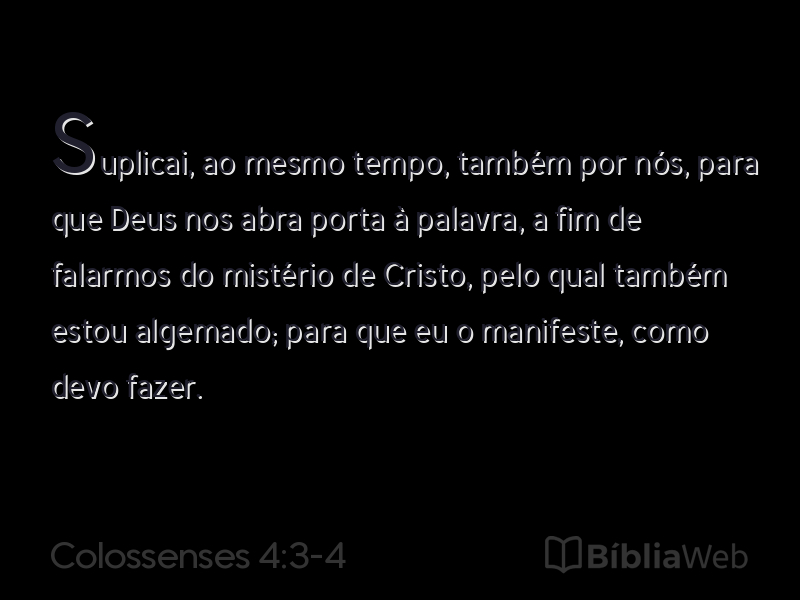 Versículos 3 a 4 de Colossenses 4 da Bíblia. Almeida Revisada e Atualizada (1993)
