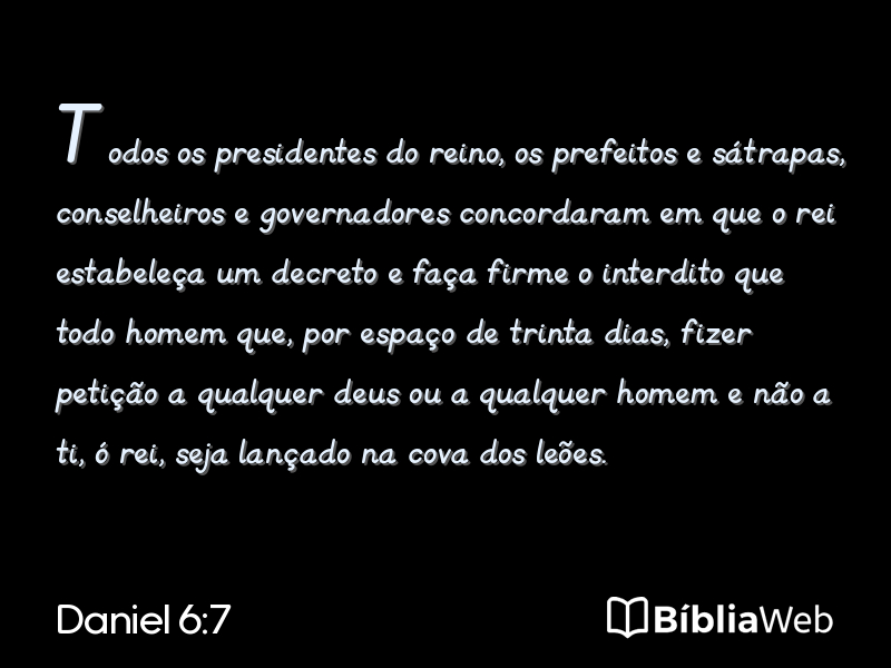 Versículo 7 de Daniel 6 da Bíblia. Almeida Revisada e Atualizada (1993)