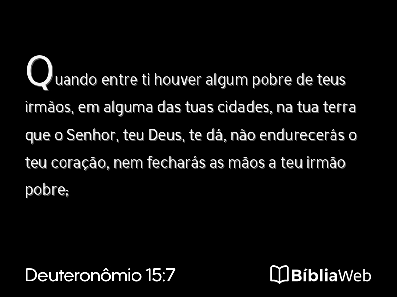 7Quando entre ti houver algum pobre de teus irmãos, em alguma das tuas cidades, na tua terra que o Senhor, teu Deus, te dá, não endurecerás o teu coração, nem fecharás as mãos a teu irmão pobre;