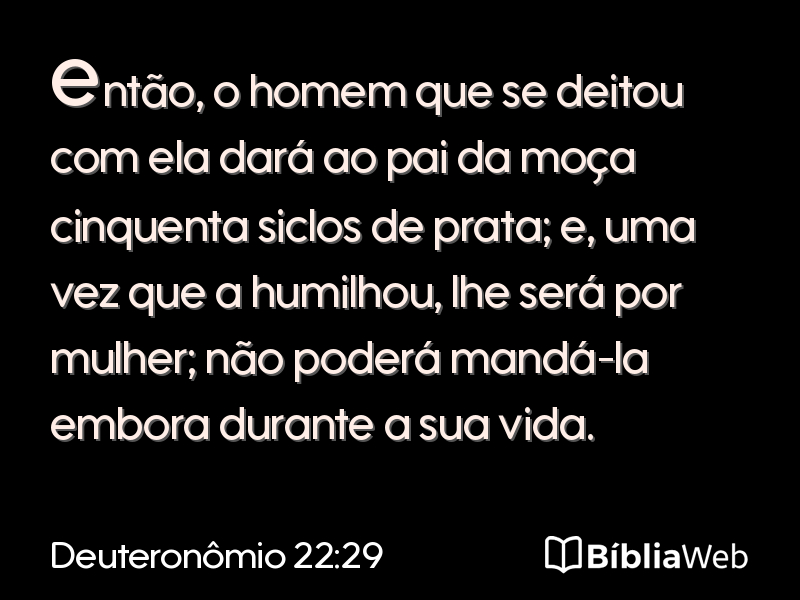 Versículo 29 de Deuteronômio 22 da Bíblia. Almeida Revisada e Atualizada (1993)