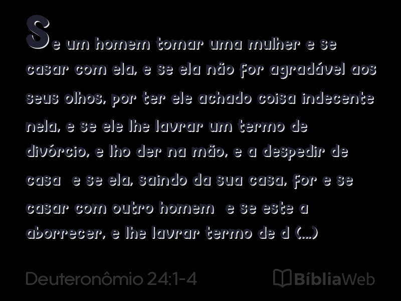 Se um homem tomar uma mulher e se casar com ela, e se ela não for agradável aos seus olhos, por ter ele achado coisa indecente nela, e se ele lhe lavrar um termo de divórcio, e lho der na mão, e a despedir de casa;