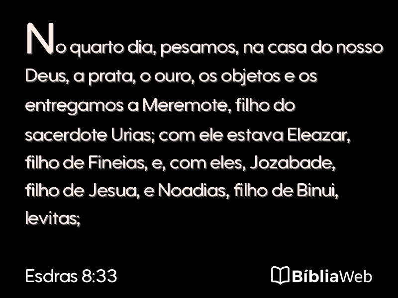 Versículo 33 de Esdras 8 da Bíblia. Almeida Revisada e Atualizada (1993)