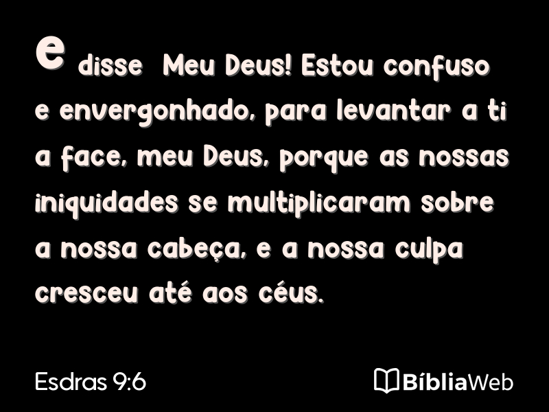 6e disse: Meu Deus! Estou confuso e envergonhado, para levantar a ti a face, meu Deus, porque as nossas iniquidades se multiplicaram sobre a nossa cabeça, e a nossa culpa cresceu até aos céus.