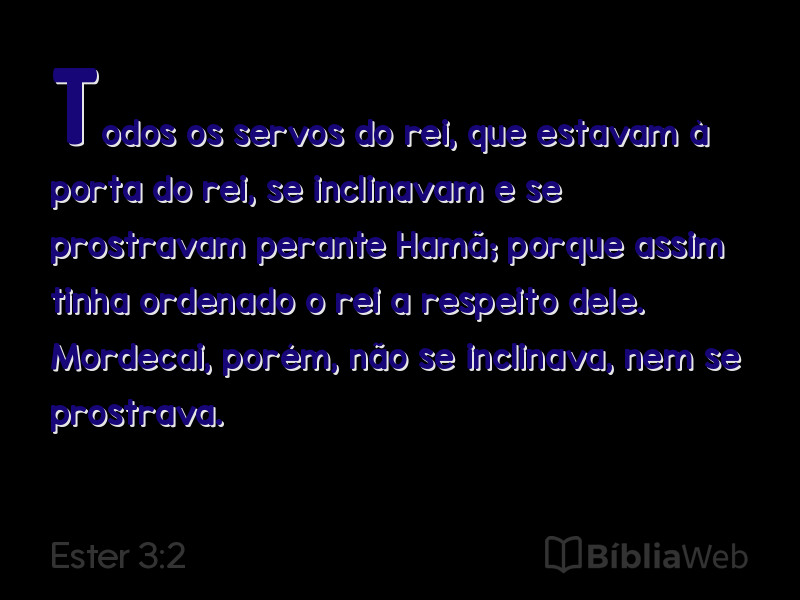 2Todos os servos do rei, que estavam à porta do rei, se inclinavam e se prostravam perante Hamã; porque assim tinha ordenado o rei a respeito dele. Mordecai, porém, não se inclinava, nem se prostrava.