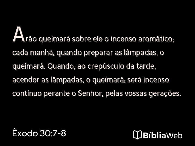 Versículos 7 a 8 de Êxodo 30 da Bíblia. Almeida Revisada e Atualizada (1993)