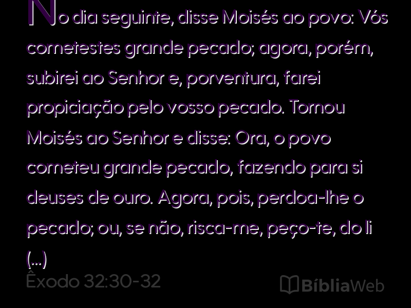 Versículos 30 a 32 de Êxodo 32 da Bíblia. Almeida Revisada e Atualizada (1993)