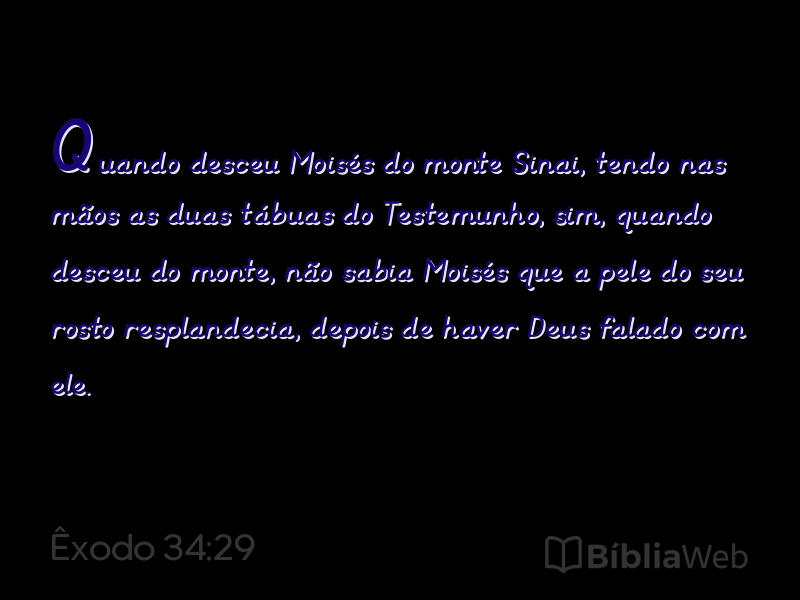Versículo 29 de Êxodo 34 da Bíblia. Almeida Revisada e Atualizada (1993)