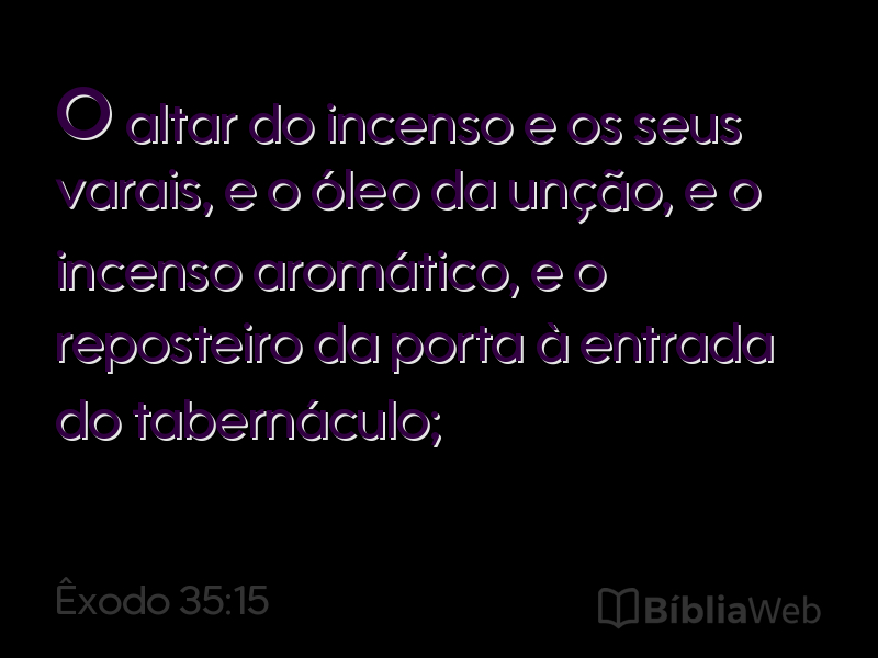 Versículo 15 de Êxodo 35 da Bíblia. Almeida Revisada e Atualizada (1993)