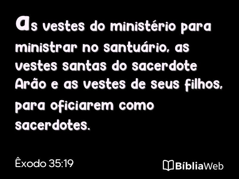 Versículo 19 de Êxodo 35 da Bíblia. Almeida Revisada e Atualizada (1993)