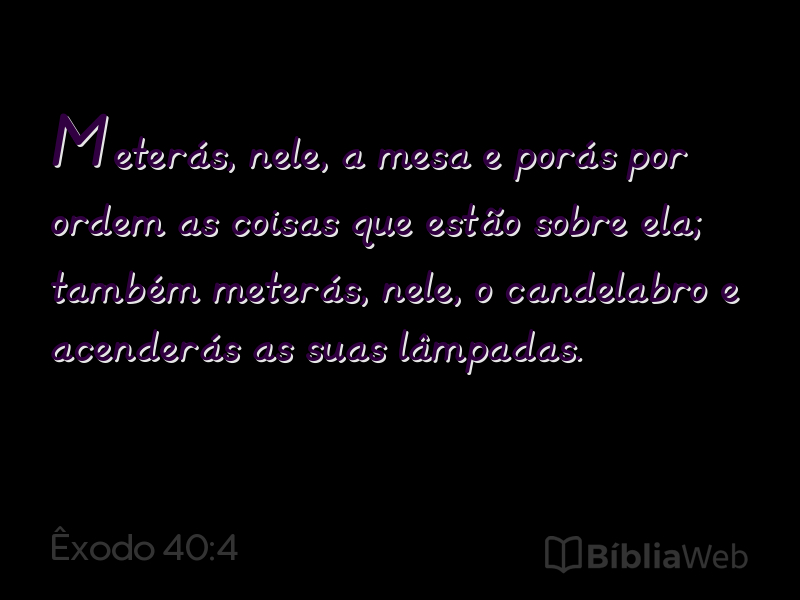 Versículo 4 de Êxodo 40 da Bíblia. Almeida Revisada e Atualizada (1993)