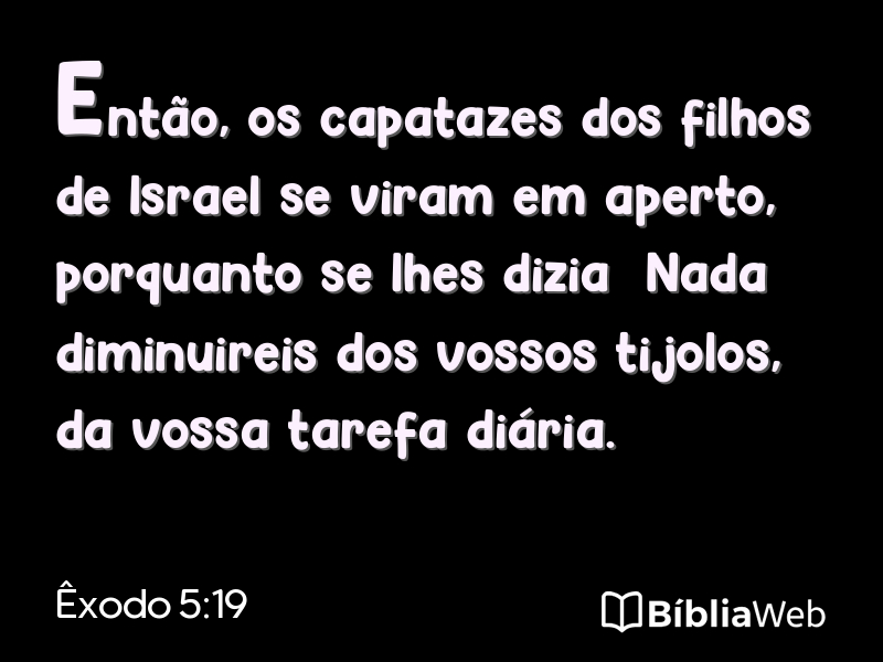 Versículo 19 de Êxodo 5 da Bíblia. Almeida Revisada e Atualizada (1993)