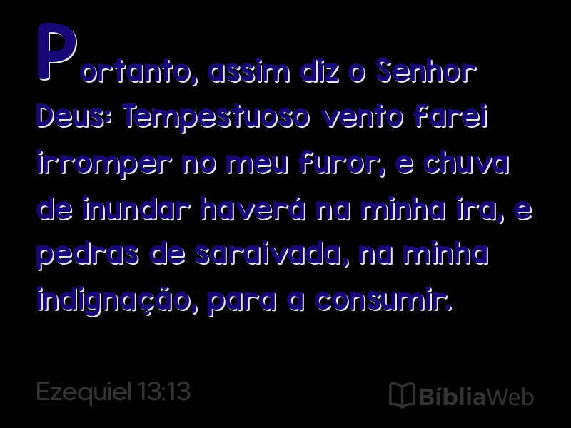 13Portanto, assim diz o Senhor Deus: Tempestuoso vento farei irromper no meu furor, e chuva de inundar haverá na minha ira, e pedras de saraivada, na minha indignação, para a consumir.