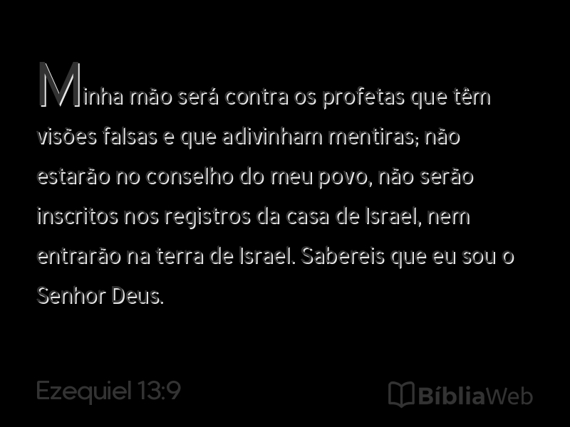 9Minha mão será contra os profetas que têm visões falsas e que adivinham mentiras; não estarão no conselho do meu povo, não serão inscritos nos registros da casa de Israel, nem entrarão na terra de Israel. Sabereis que eu sou o Senhor Deus.