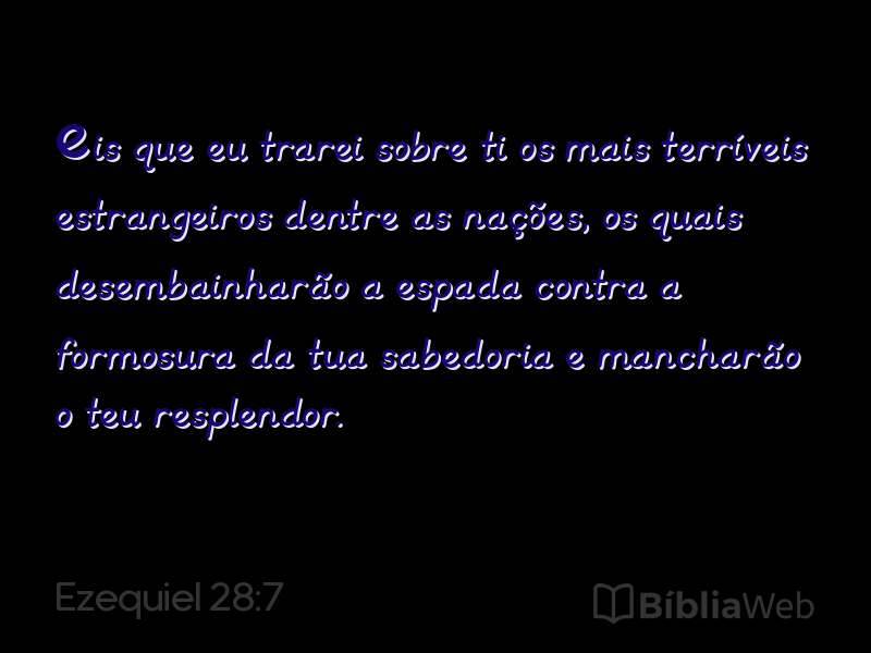 7eis que eu trarei sobre ti os mais terríveis estrangeiros dentre as nações, os quais desembainharão a espada contra a formosura da tua sabedoria e mancharão o teu resplendor.