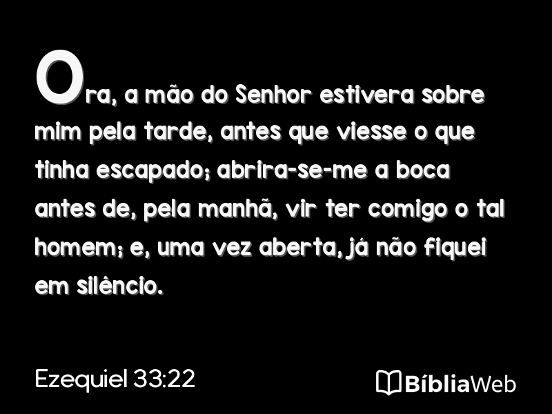 22Ora, a mão do Senhor estivera sobre mim pela tarde, antes que viesse o que tinha escapado; abrira-se-me a boca antes de, pela manhã, vir ter comigo o tal homem; e, uma vez aberta, já não fiquei em silêncio.