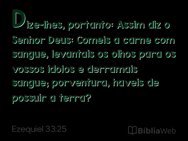 25Dize-lhes, portanto: Assim diz o Senhor Deus: Comeis a carne com sangue, levantais os olhos para os vossos ídolos e derramais sangue; porventura, haveis de possuir a terra?