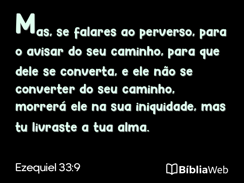 9Mas, se falares ao perverso, para o avisar do seu caminho, para que dele se converta, e ele não se converter do seu caminho, morrerá ele na sua iniquidade, mas tu livraste a tua alma.