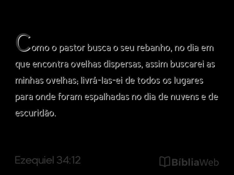 12Como o pastor busca o seu rebanho, no dia em que encontra ovelhas dispersas, assim buscarei as minhas ovelhas; livrá-las-ei de todos os lugares para onde foram espalhadas no dia de nuvens e de escuridão.