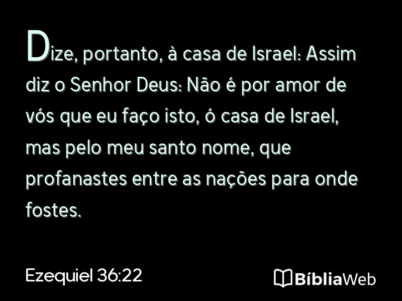 22Dize, portanto, à casa de Israel: Assim diz o Senhor Deus: Não é por amor de vós que eu faço isto, ó casa de Israel, mas pelo meu santo nome, que profanastes entre as nações para onde fostes.