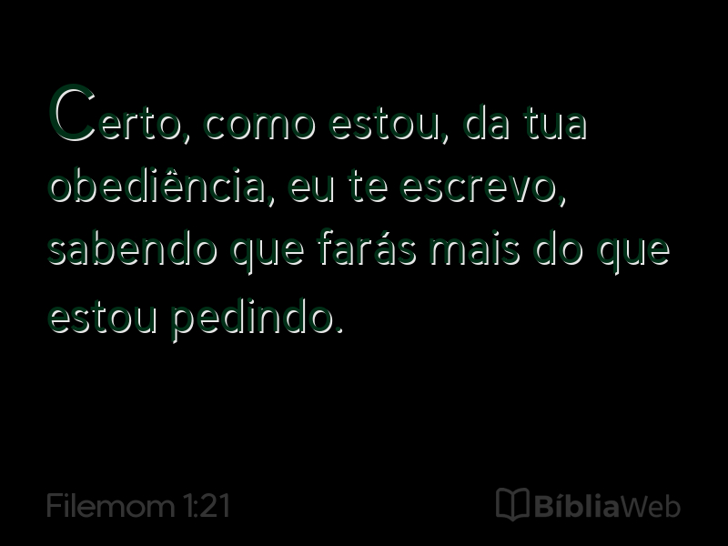 Versículo 21 de Filemom 1 da Bíblia. Almeida Revisada e Atualizada (1993)