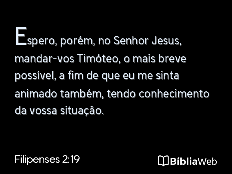 Versículo 19 de Filipenses 2 da Bíblia. Almeida Revisada e Atualizada (1993)