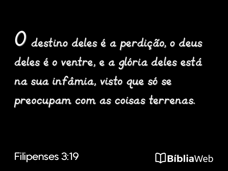 Versículo 19 de Filipenses 3 da Bíblia. Almeida Revisada e Atualizada (1993)