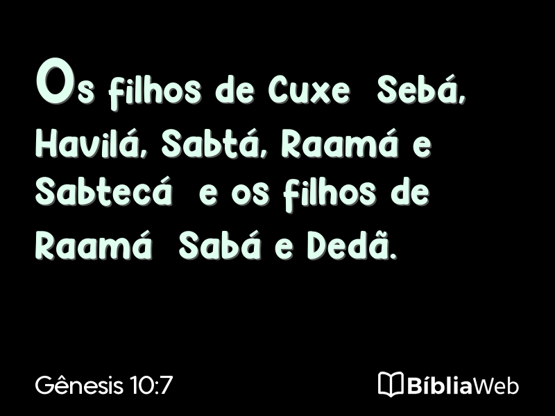 Versículo 7 de Gênesis 10 da Bíblia. Almeida Revisada e Atualizada (1993)