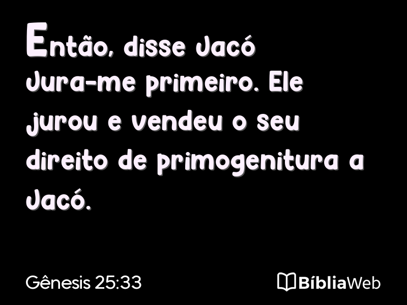 Versículo 33 de Gênesis 25 da Bíblia. Almeida Revisada e Atualizada (1993)