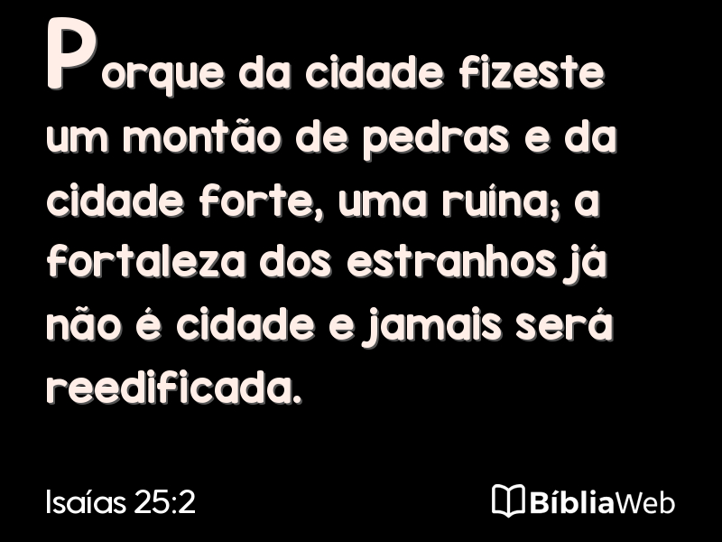 Versículo 2 de Isaías 25 da Bíblia. Almeida Revisada e Atualizada (1993)