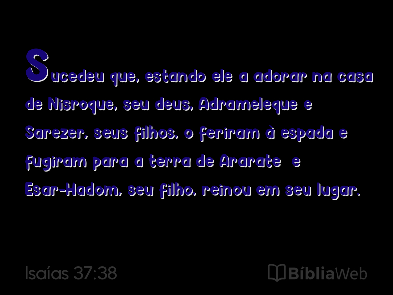 38Sucedeu que, estando ele a adorar na casa de Nisroque, seu deus, Adrameleque e Sarezer, seus filhos, o feriram à espada e fugiram para a terra de Ararate; e Esar-Hadom, seu filho, reinou em seu lugar.