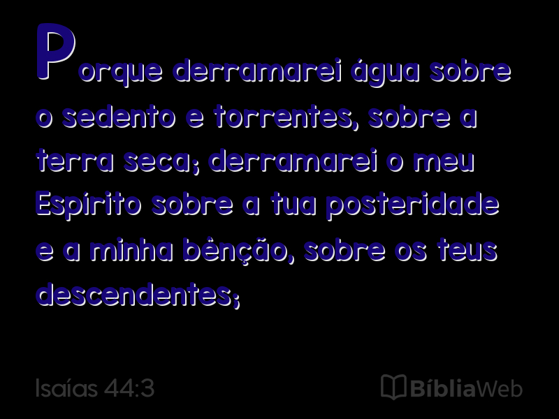Versículo 3 de Isaías 44 da Bíblia. Almeida Revisada e Atualizada (1993)