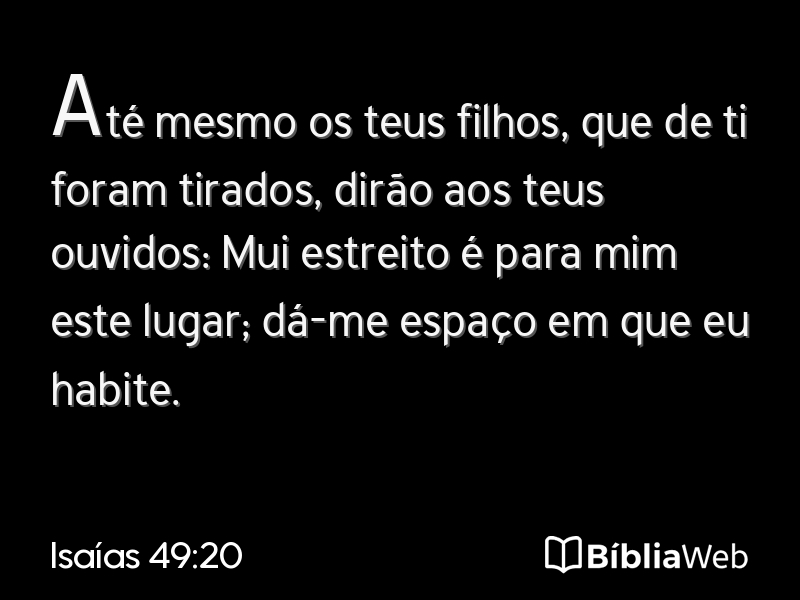 Versículo 20 de Isaías 49 da Bíblia. Almeida Revisada e Atualizada (1993)