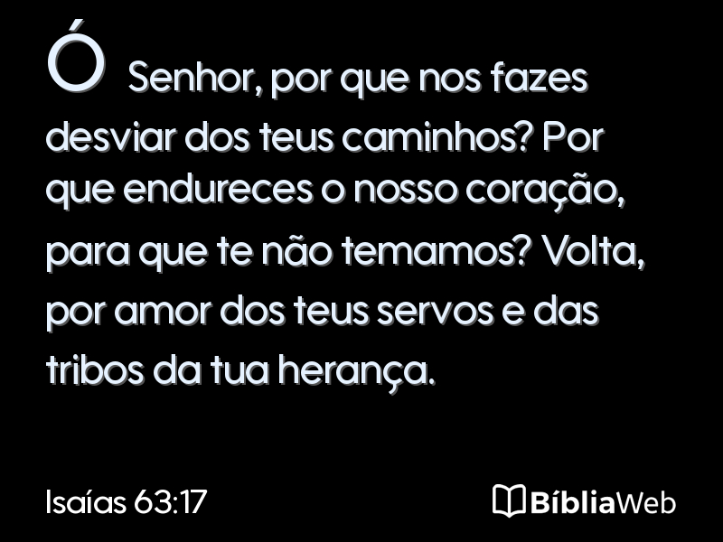 17Ó Senhor, por que nos fazes desviar dos teus caminhos? Por que endureces o nosso coração, para que te não temamos? Volta, por amor dos teus servos e das tribos da tua herança.