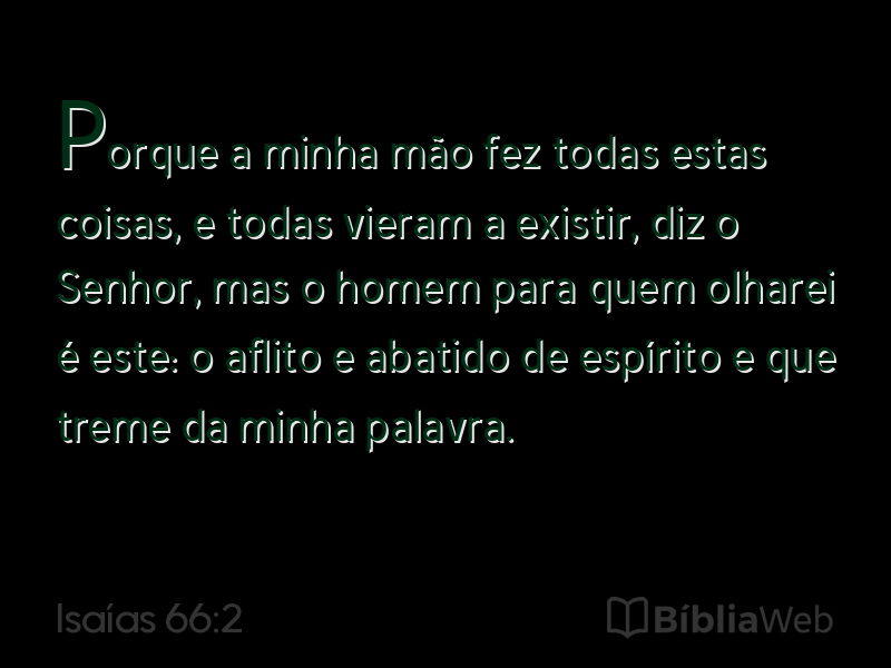 2Porque a minha mão fez todas estas coisas, e todas vieram a existir, diz o Senhor, mas o homem para quem olharei é este: o aflito e abatido de espírito e que treme da minha palavra.