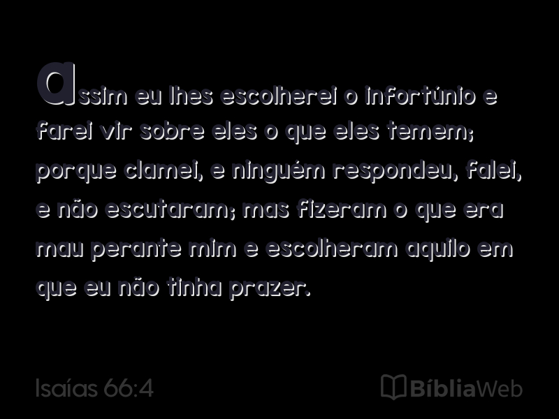 Versículo 4 de Isaías 66 da Bíblia. Almeida Revisada e Atualizada (1993)