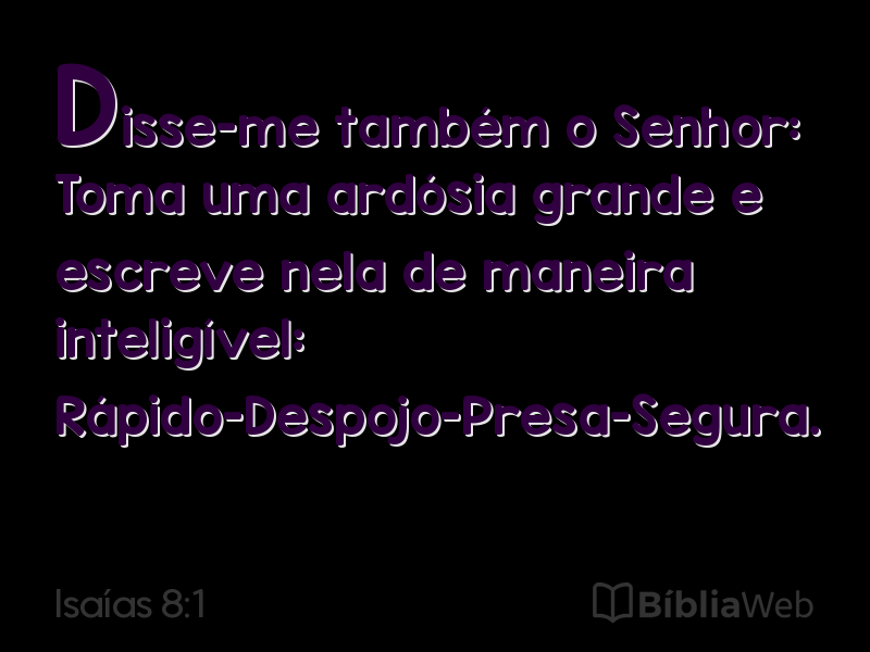 Versículo 1 de Isaías 8 da Bíblia. Almeida Revisada e Atualizada (1993)