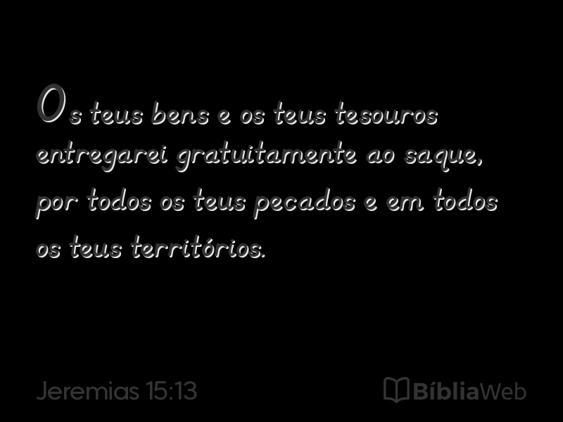 Versículo 13 de Jeremias 15 da Bíblia. Almeida Revisada e Atualizada (1993)