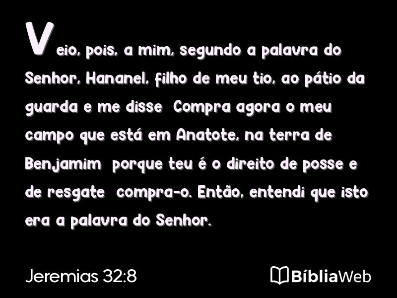 Versículo 8 de Jeremias 32 da Bíblia. Almeida Revisada e Atualizada (1993)