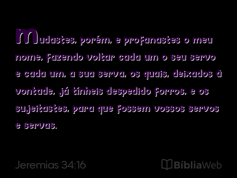 Versículo 16 de Jeremias 34 da Bíblia. Almeida Revisada e Atualizada (1993)